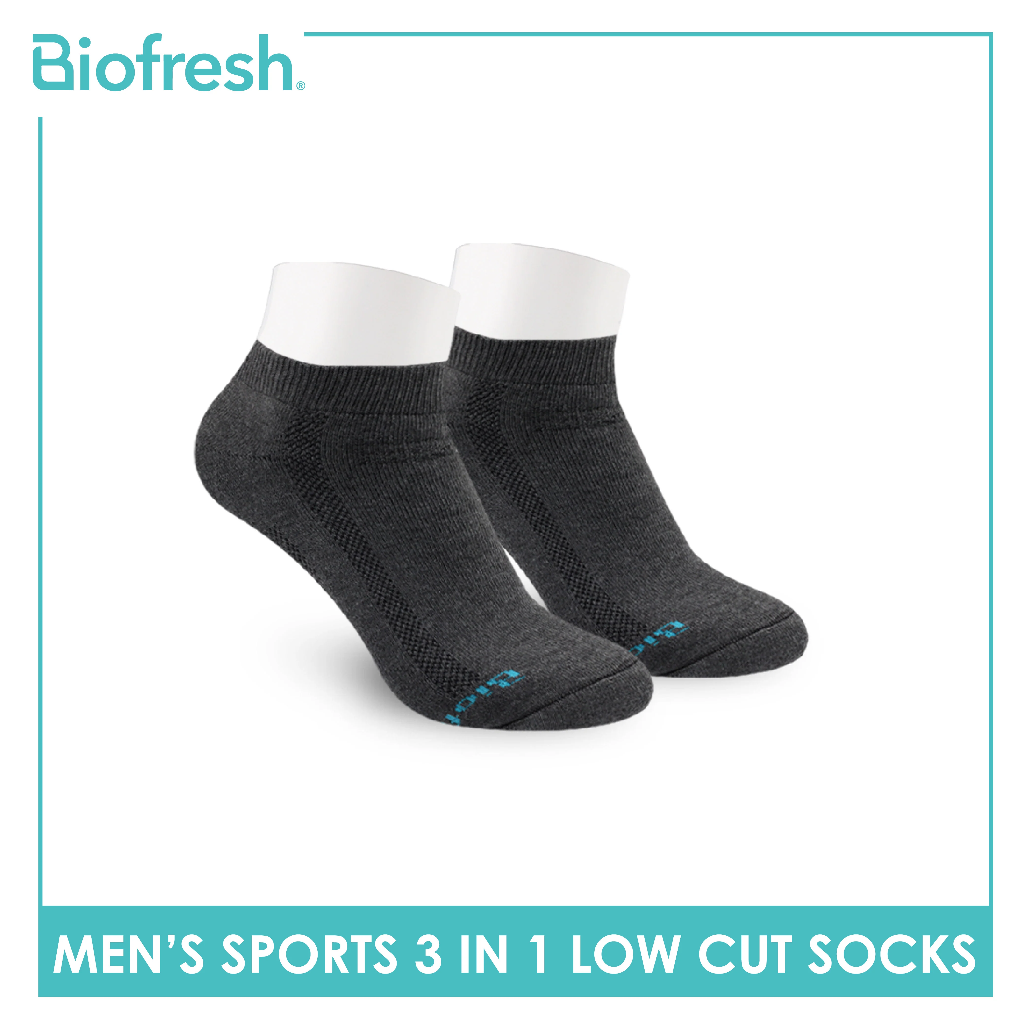 Biofresh Men’s Antimicrobial Odor Free Cotton Ankle Thick Sports Socks 3 pairs in a pack RMSKG19