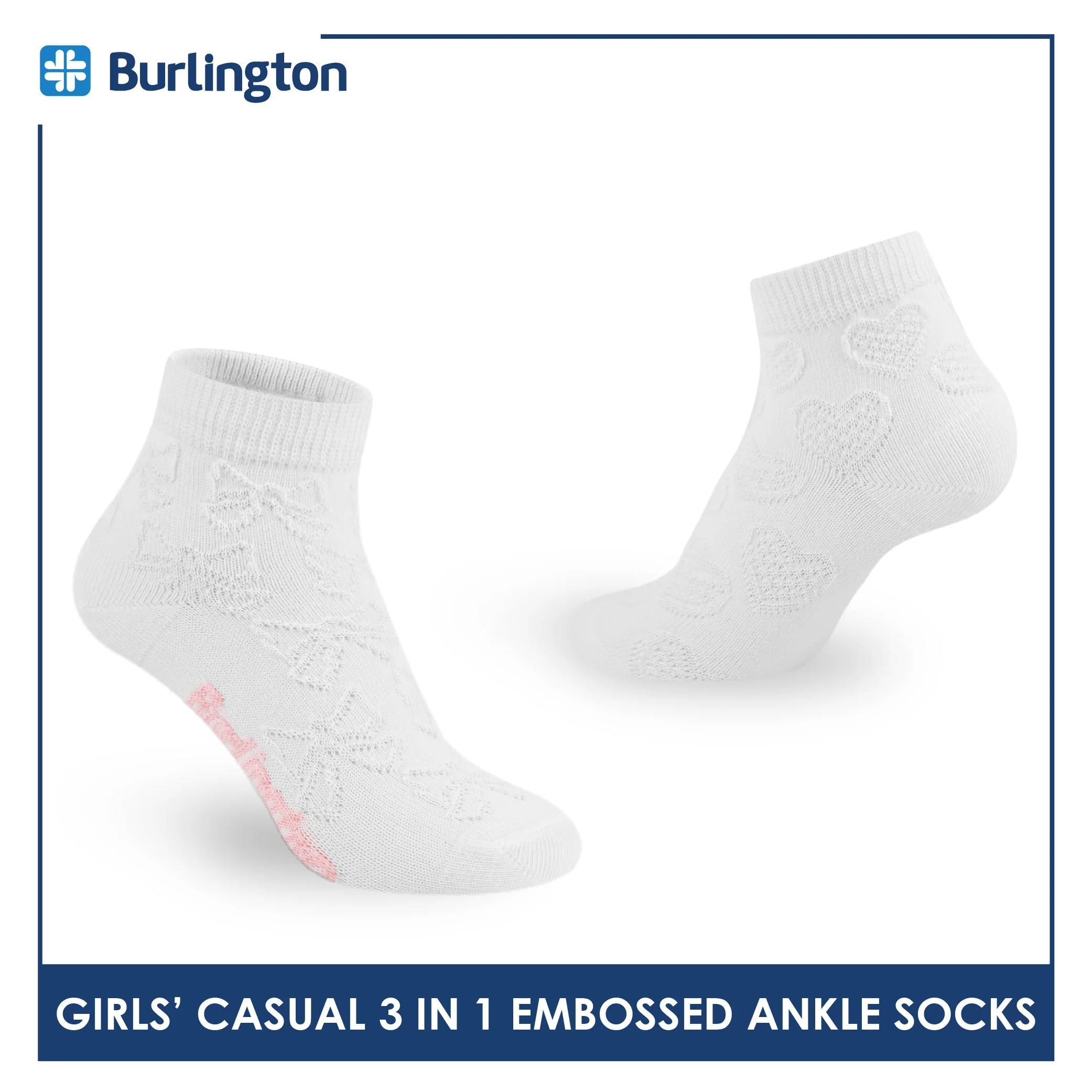 Burlington Children's Embossed Cotton Lite Casual Ankle Socks 3 pairs in 1 pack BGCMG1