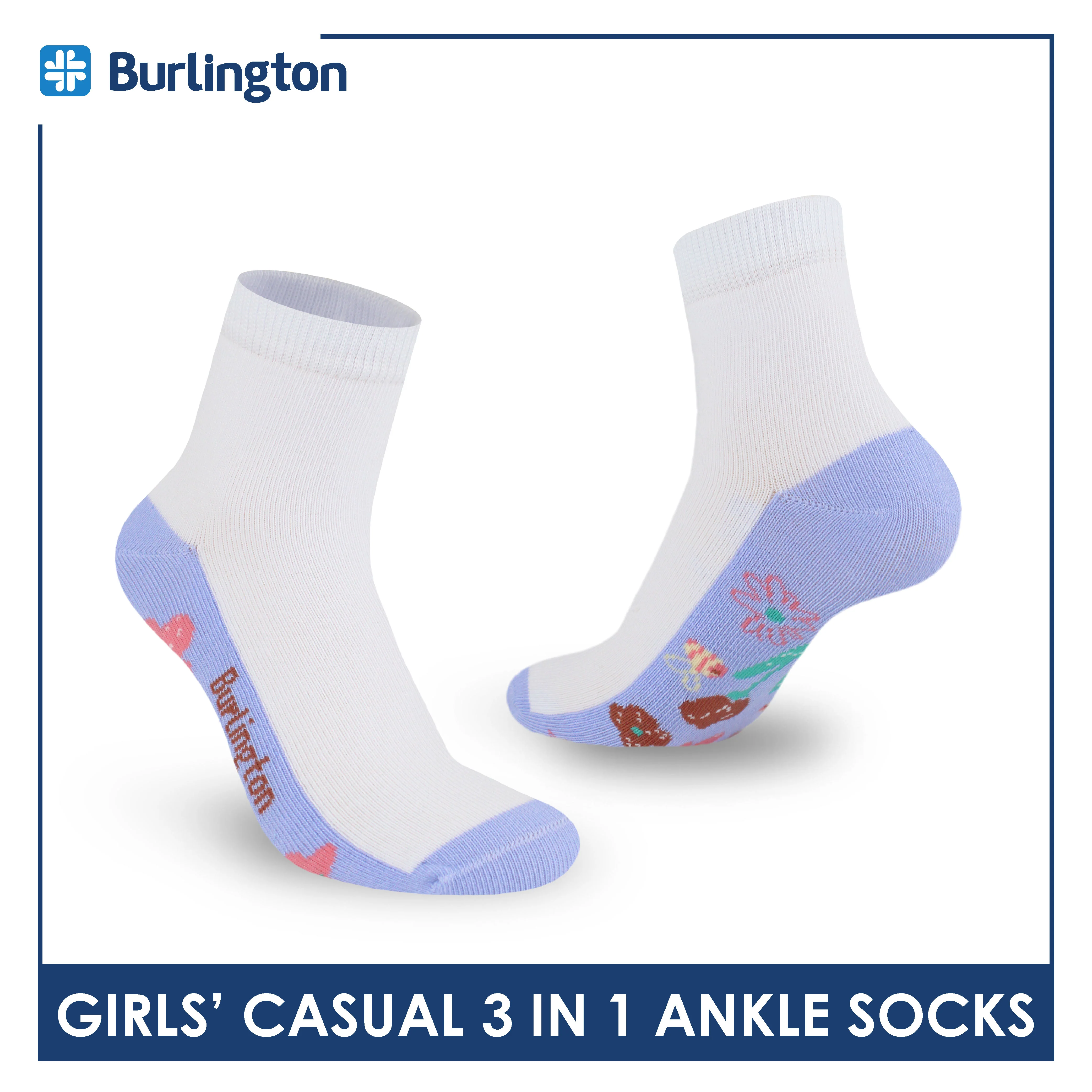 Burlington Girl's Cotton Lite Casual Ankle Socks 3 pairs in 1 pack BGCKG65