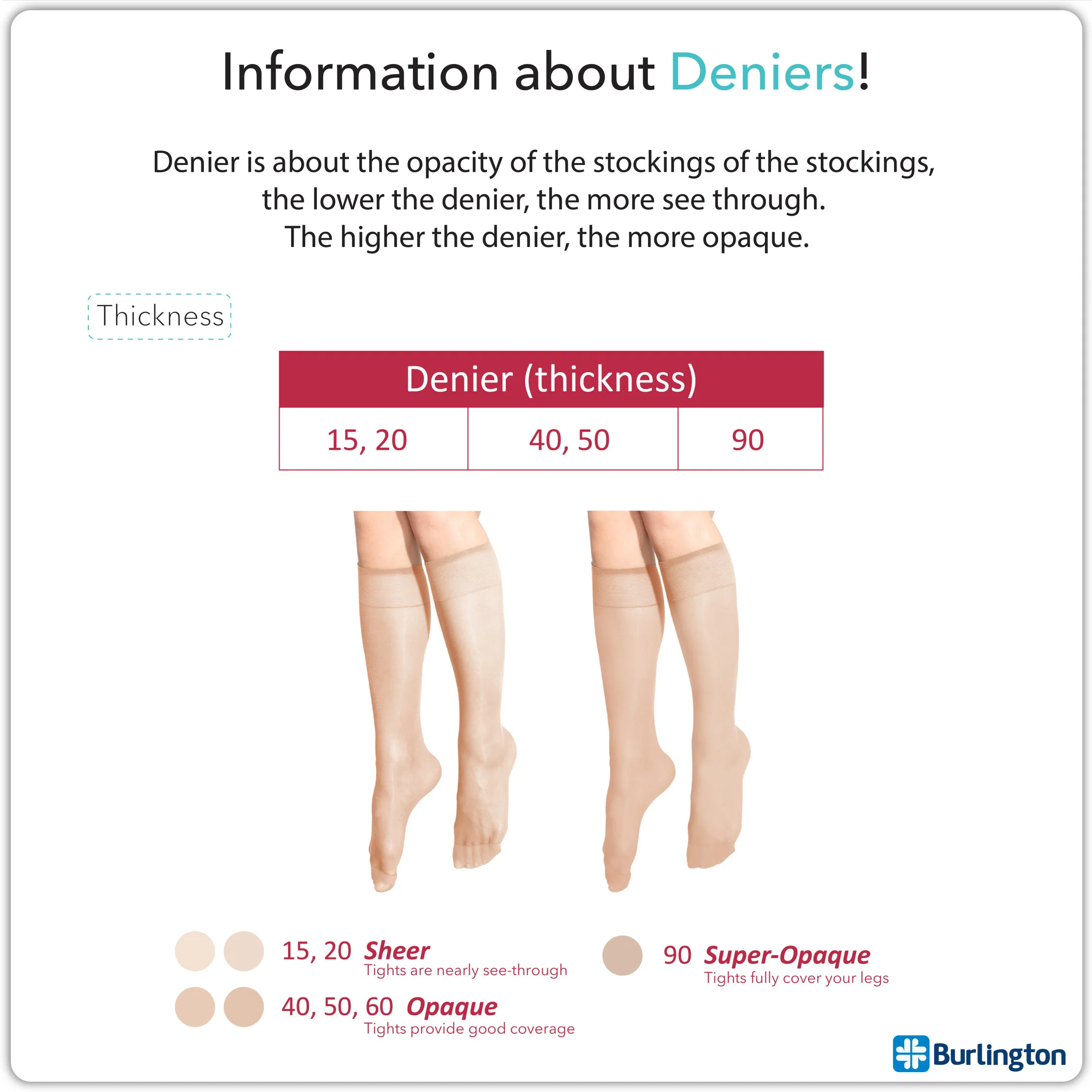 Available in 15 and 50 denier. A good alternative for those who want to wear socks but find socks too thick. Our knee-high stockings are perfect for your skinny jeans, slacks, and flats.