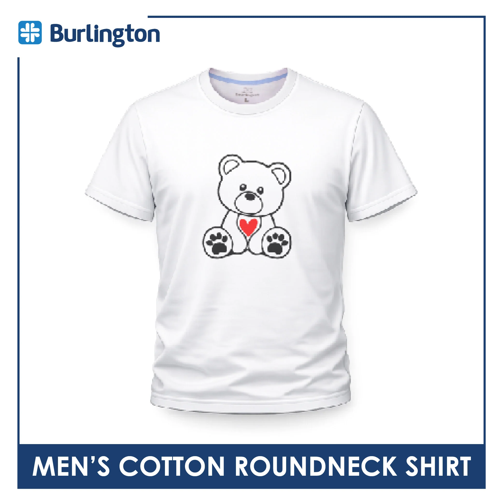 Burlington Men’s Cotton Bearlington Valentine’s Heart Roundneck Shirt 1pc TBMDSR2