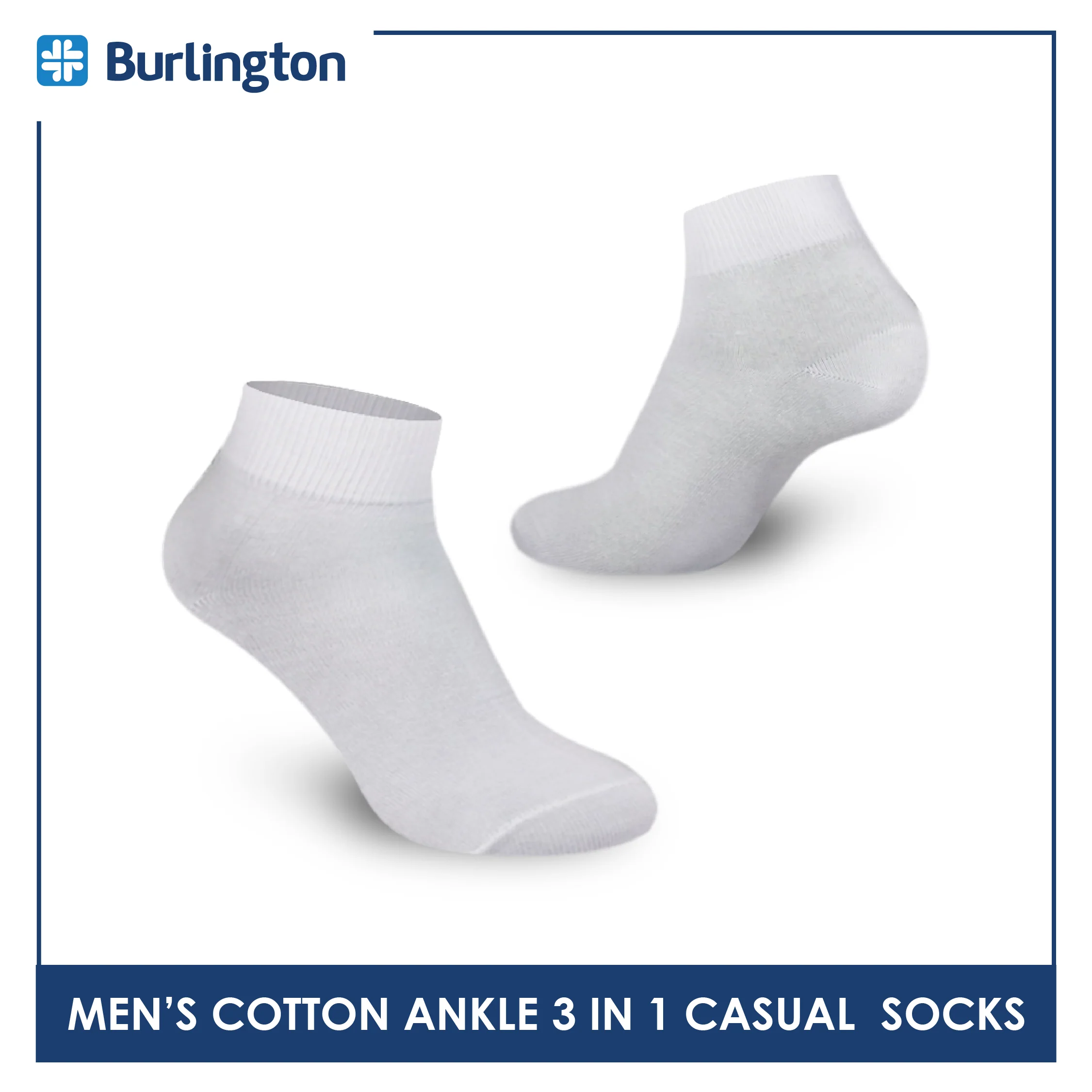 Burlington Men's Cotton Lite Thin Casual Ankle Socks 3 pairs in a pack 142